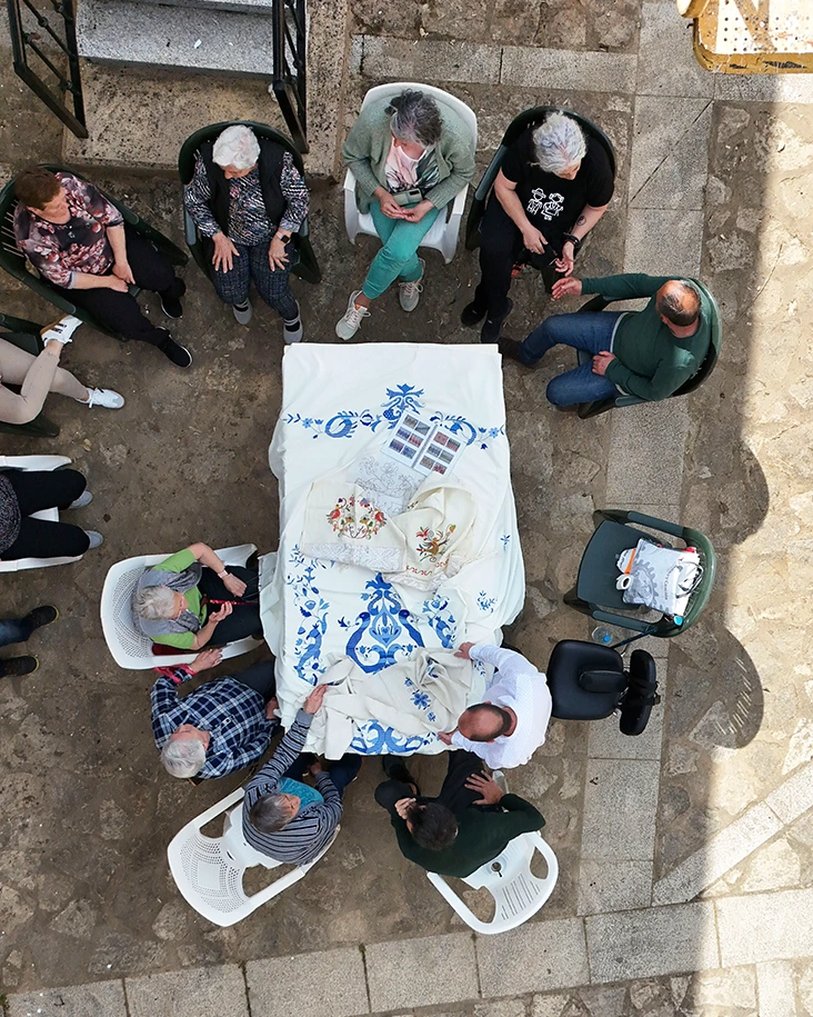 Intervención realizada en Garcibuey como homenaje al bordado serrano, una práctica tradicional transmitida durante generaciones por las mujeres de la región.